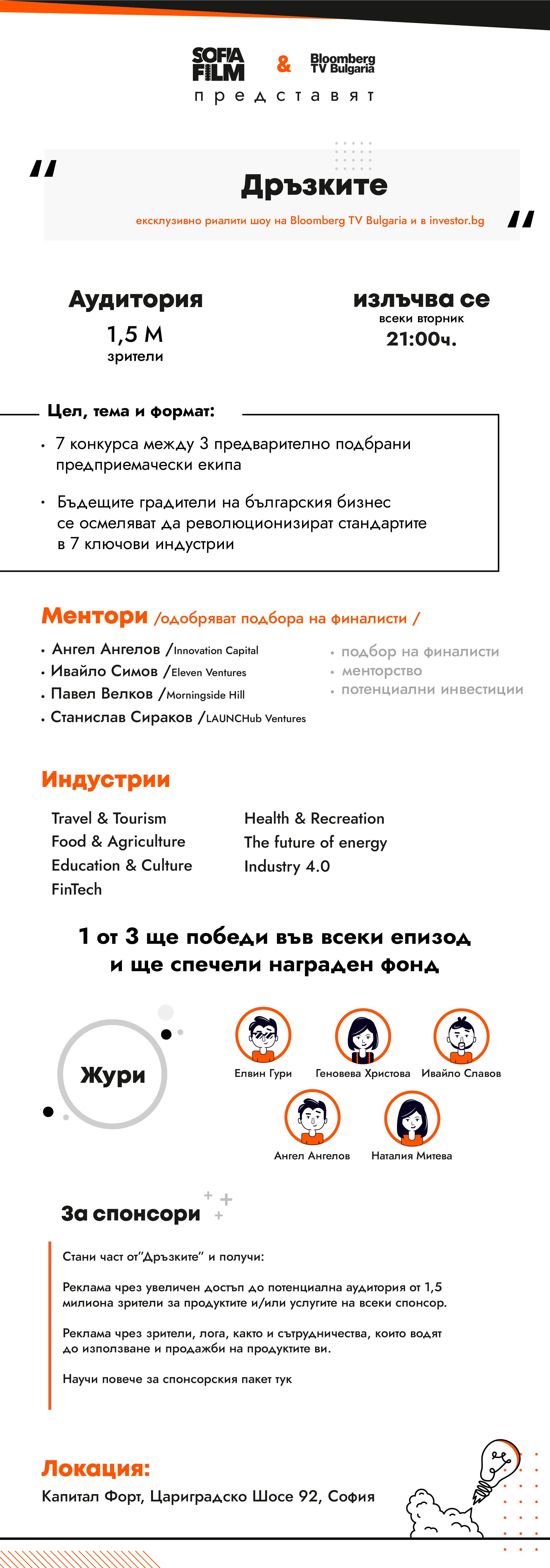 We teamed up with Bloomberg TV Bulgaria to create a reality show series. The purpose is to identify, attract and support entrepreneurial teams whose ideas can change the world. We have called it: „The Daring“.